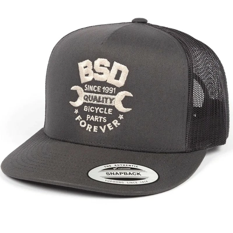Casquette Trucker SNAPBACK avec le design BSD brodé devant.